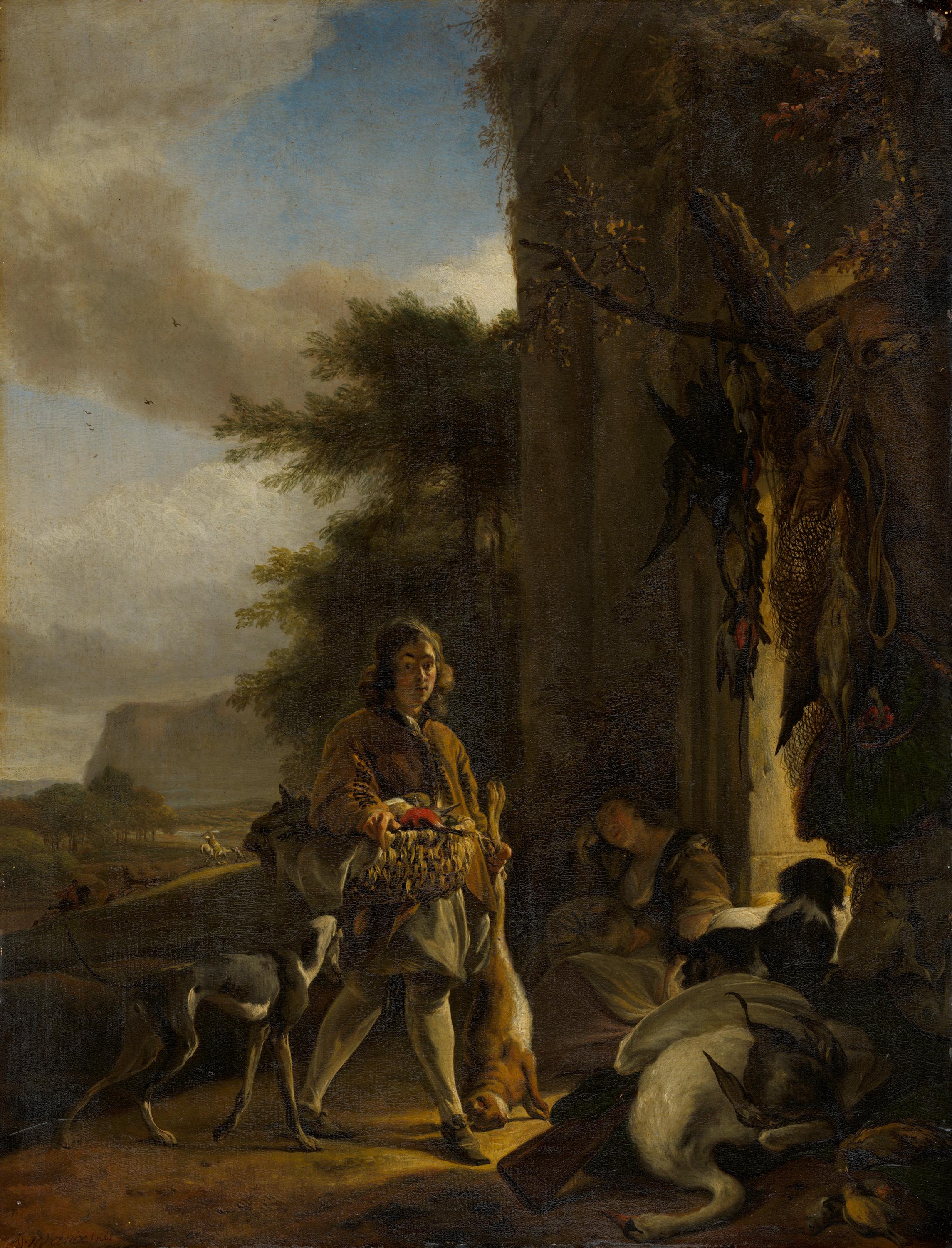 Der fleißige und tugendhafte, mit reicher Beute heimkehrende Jäger ist dem lasterhaften Müßiggang der schlummernden Frauen (siehe Inv. Nr. 246) moralisierend gegenübergestellt. Nach 1680 spezialisierte sich Weenix auf Tier- und Jagdstillleben und stand ab 1702 im Dienst des Düsseldorfer Kurfürsten Johann Wilhelm.