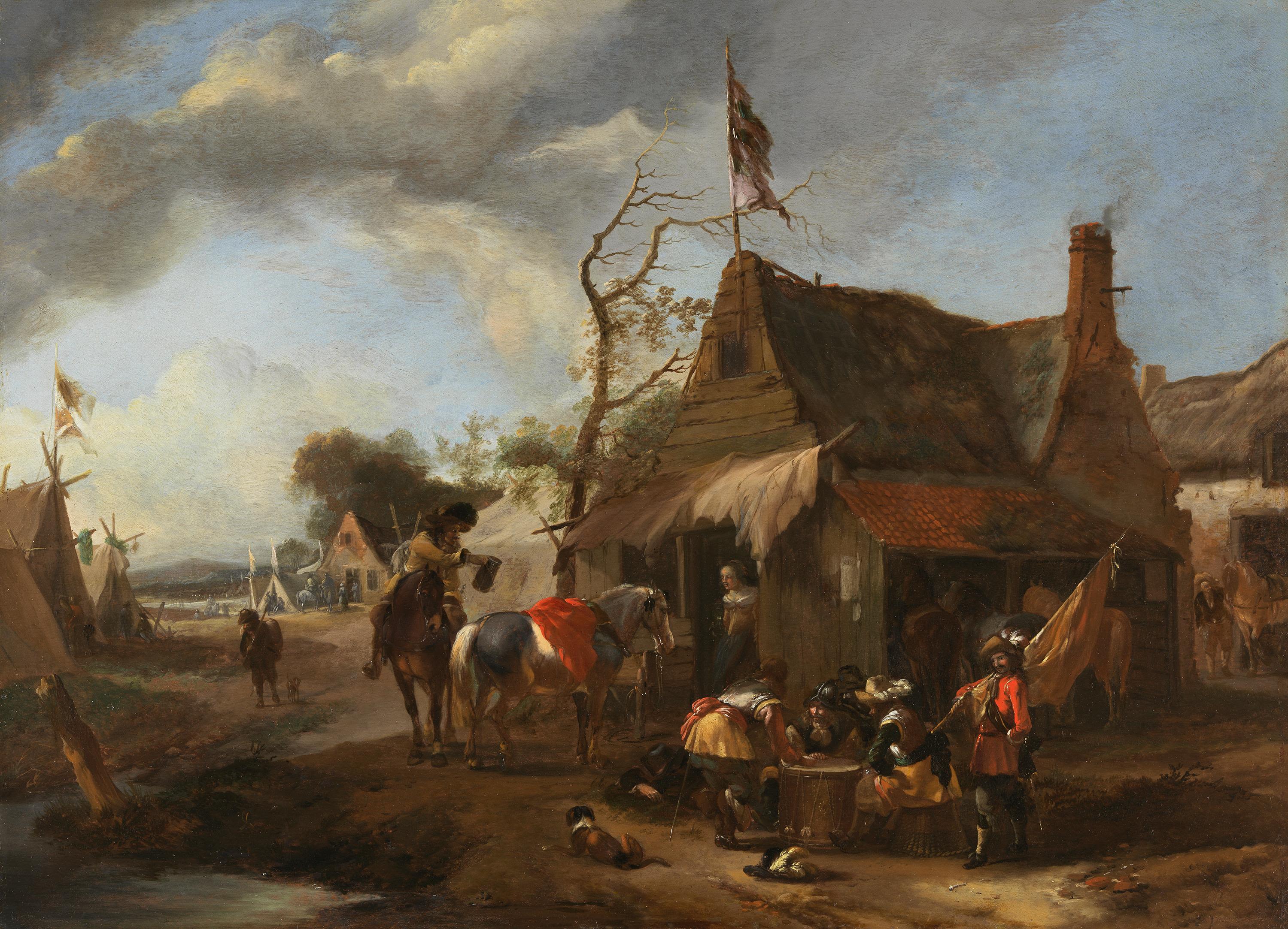 Pieter Wouwerman, Würfelnde Soldaten vor einer Schenke, Staatsgalerie im Schloss Johannisburg, URL: