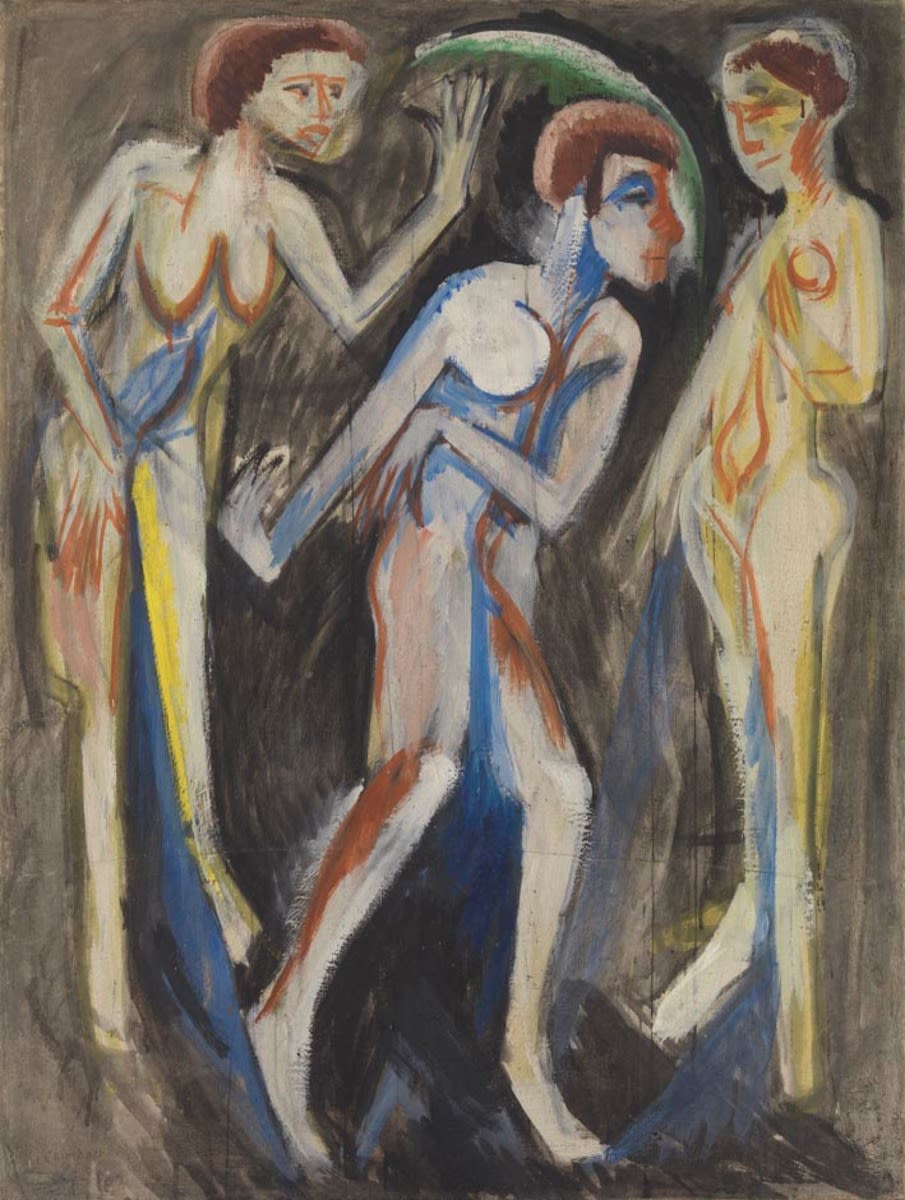 Ernst Ludwig Kirchner, Der Tanz zwischen den Frauen, 1915, Bayerische Staatsgemäldesammlungen – Pinakothek der Moderne, URL: https://www.sammlung.pinakothek.de/de/artwork/0vxoB8K42V (Zuletzt aktualisiert am 04.11.2025)