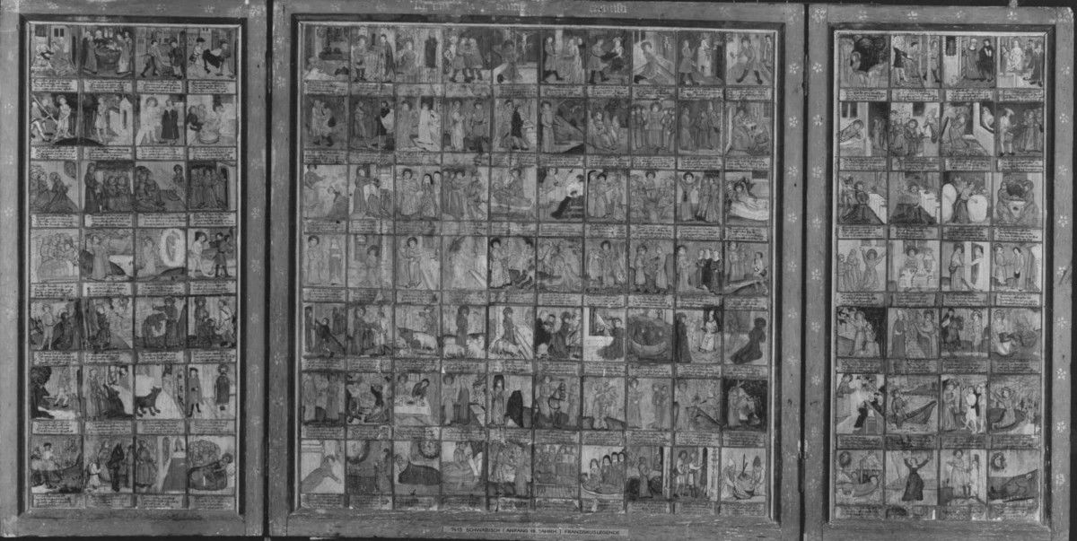 Ulmer Meister um 1500, Triptychon mit Franziskuslegende (126 Szenen)