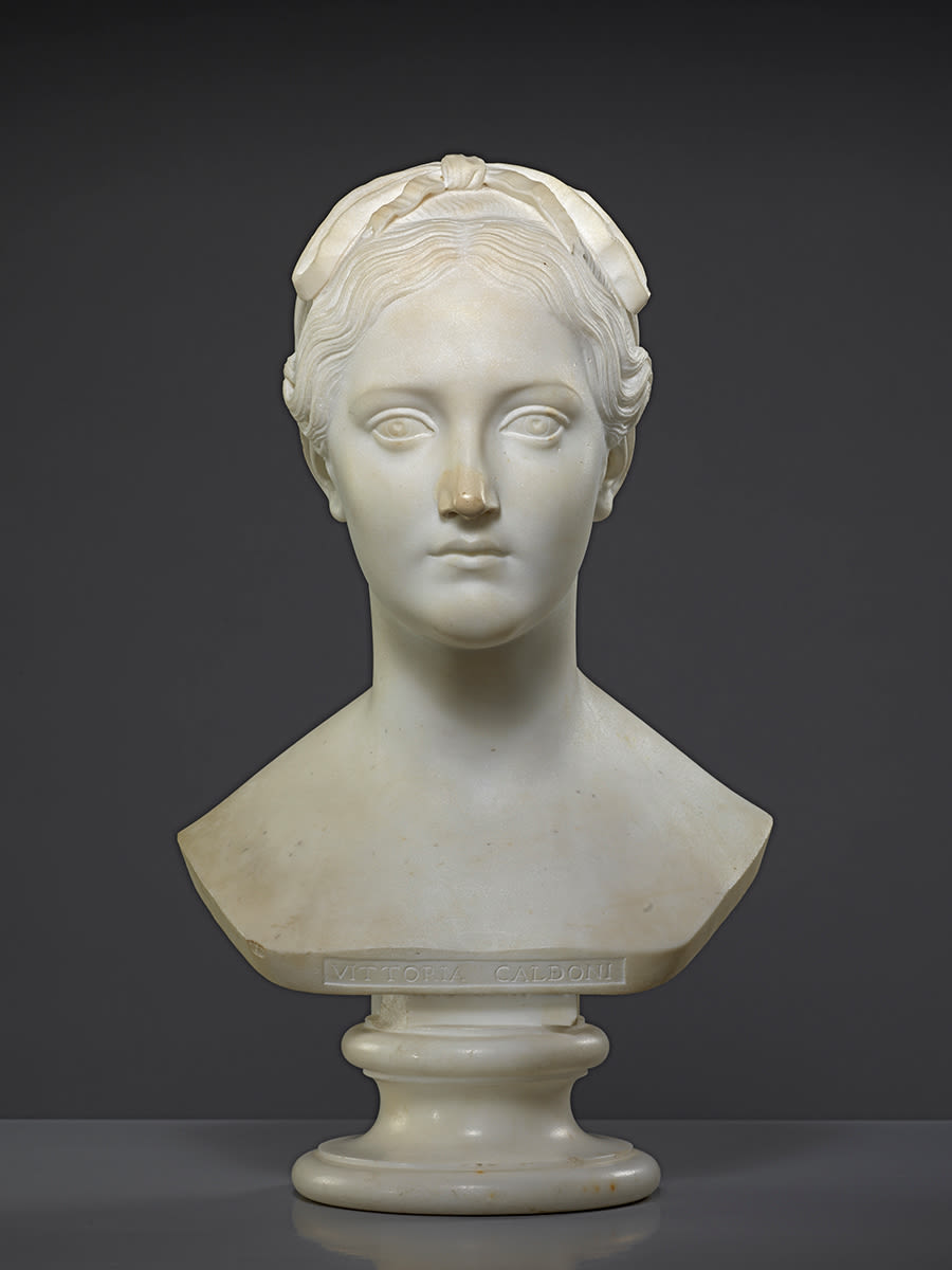 Im Herbst 1820 hatten zahlreiche Künstler aller Richtungen – Georg August Kestner zählte mindestens vierundzwanzig – in der Villa Malta, dem damaligen Sitz des hannoverschen Gesandten von Reden, Gelegenheit, die schöne Albaneserin zu porträtieren. Hier entstand auch Schadows Büste, die Kestner als »noch weniger glücklich« als diejenige Thorvaldsens beurteilte, da sie nicht eine »von der ganzen Gegenwart bewunderte Schönheit erraten« ließ. Schadow verlieh dem Antlitz Züge kindlicher Natürlichkeit und zugleich auch eine über das individuelle hinausgehende Idealisierung. Kronprinz Ludwig von Bayern hatte – bei seinem ausgeprägten Sinn für Schönheit von Vittoria Caldoni fasziniert – schon 1821 ihr Bildnis in einem Gemälde von Friedrich Overbeck erworben (Inv.Nr.WAF 757). Schadows Büste, die er sich aus dessen Nachlass sicherte, gelangte erst 1824/25 aus Rom nach München, wo sie seit 1830 in der Glyptothek im »Saal der Neueren« aufgestellt war. Eine verkleinerte Wiederholung der Büste – bezeichnet »Rudolph Schadow fecit Roma 1821« – befindet sich im Kurpfälzischen Museum, Heidelberg.