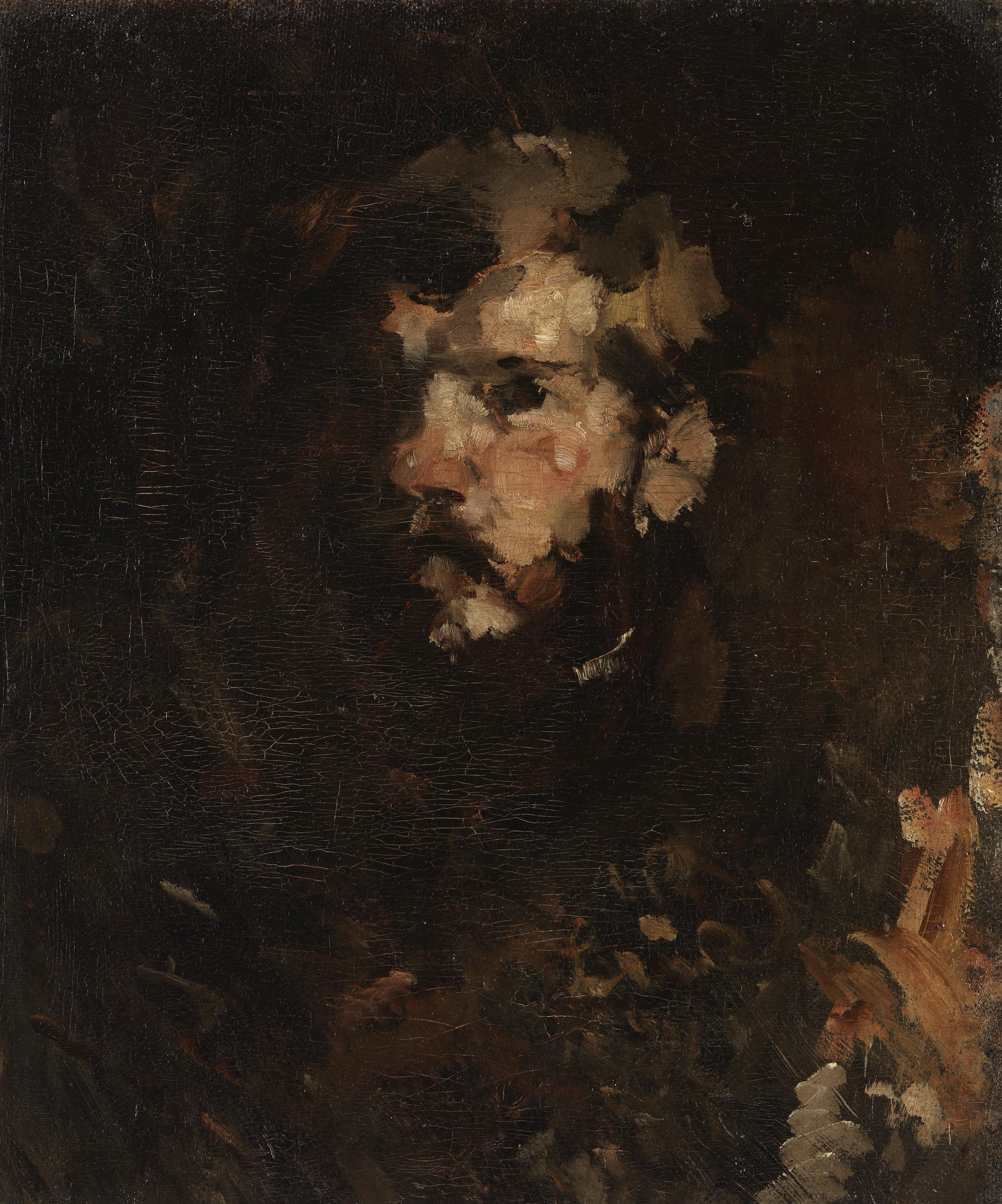Wilhelm Leibl, Bildnisstudie eines jungen bärtigen Mannes, um 1870, Bayerische Staatsgemäldesammlungen – Neue Pinakothek, URL: