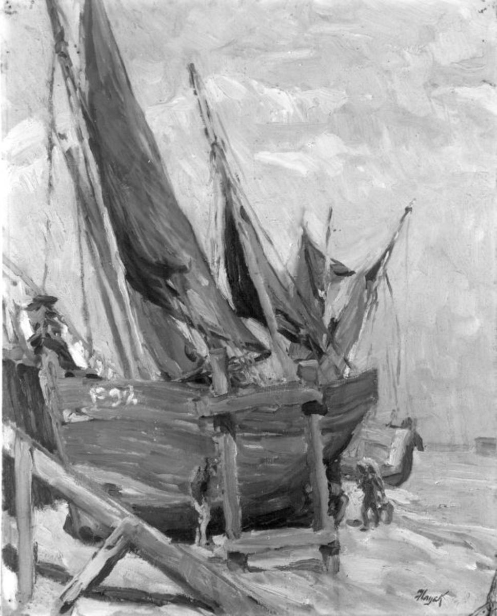 Hans von Hayek, Schiffe, um 1930, Bayerische Staatsgemäldesammlungen – Neue Pinakothek, URL: https://www.sammlung.pinakothek.de/de/artwork/8eGV5dBLWQ (Zuletzt aktualisiert am 10.10.2025)