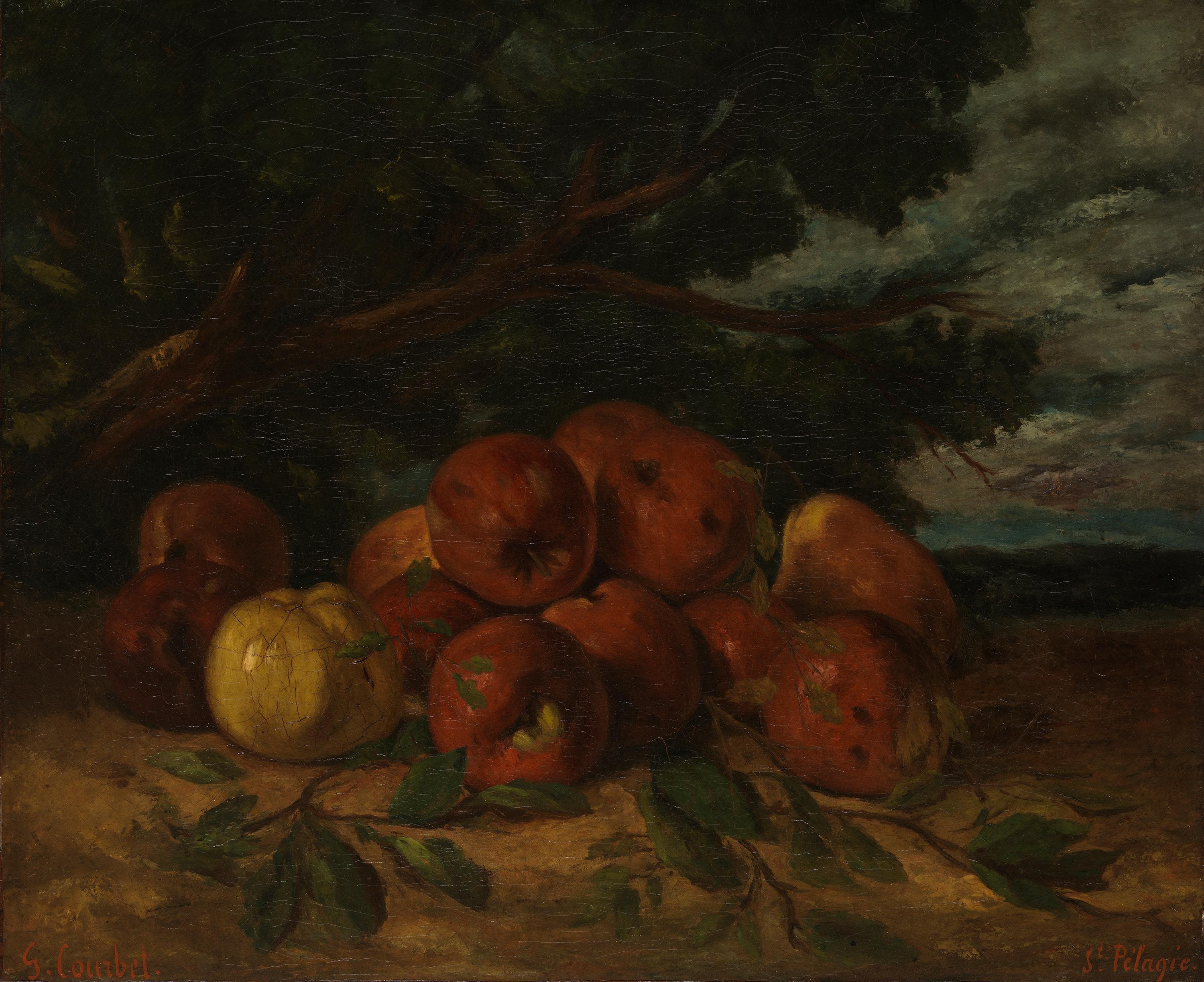 Das von dem Sammler Marczell von Nemes an Hugo von Tschudi geschenkte Apfelstillleben gehört zu den etwa vierzig Bildern, die Gustave Courbet während seines Aufenthaltes im Gefängnis von Sainte-Pélagie und in der Klinik des Dr. Duval in Neuilly gemalt hat. Man hatte den zeit seines Lebens politisch aktiven Künstler nach seiner Beteiligung am Aufstand der Pariser Kommune 1871 und der Zerstörung der Vendôme-Säule zu sechs Monaten Gefängnis in Sainte-Pélagie verurteilt und ihn dort wie einen gewöhnlichen Verbrecher behandelt. Jedoch wurde das zunächst verhängte Malverbot nach und nach gelockert, sodass Courbet Obst oder Blumen, die ihm von Besuchern mitgebracht wurden, als Sujets wählte. Die Schwester des Künstlers berichtete von dem zunehmenden Interesse Courbets an den zwangsweise vorgegebenen Motiven: »Gustave peint des fleurs et des fruits. (…)