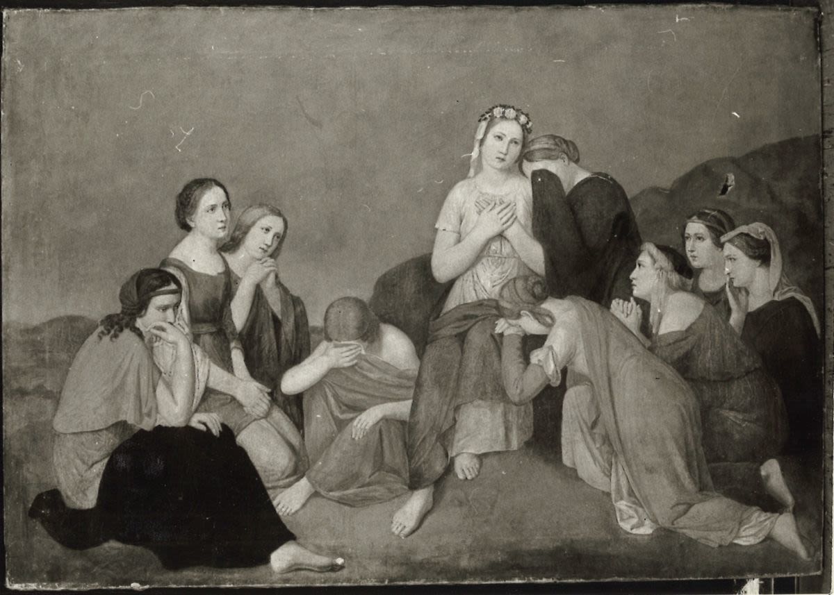 Ferdinand August Michael Fellner(?), Frauengruppe in Landschaft, um 1830/40, Bayerische Staatsgemäldesammlungen – Pinakothek der Moderne, URL: https://www.sammlung.pinakothek.de/de/artwork/ApL860R4N2 (Zuletzt aktualisiert am 30.10.2025)