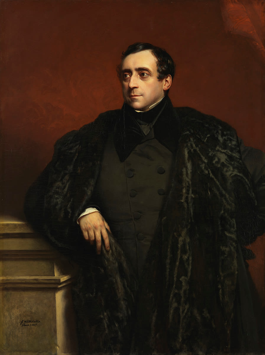 Jenison-Walworth stammte aus einer altadeligen englischen Familie, die mit seinem Großvater um 1775 nach Darmstadt übergesiedelt war. Der Dargestellte war bayerischer Diplomat u. a. in Berlin, St. Petersburg, Neapel, London, Wien und Athen. 1837, als er sich von Winterhalter porträtieren ließ, war er Gesandter Bayerns am französischen Hof. Winterhalter selbst war bereits 1834 nach Paris übergesiedelt. Wegen seiner Verehrung für Horace Vernet und die Maler der französischen Akademie war er von seinen deutschen Zeitgenossen schon lange als "der Französische" belächelt worden. Es war übrigens Graf Jenison-Walworth, der Winterhalter bei Vernets Gesellschaften in der Villa Medici in Rom eingeführt hatte. Königin Victoria, König Louis Philippe und Kaiser Napoleon III. waren bald seine wichtigsten Auftraggeber. Eine glückliche Liaison aus der Gunst jener mondänen Klientel, aus der Eleganz, der geistigen Vordergründigkeit und der technischen Finesse seines Porträtstils begründete Winterhalters glanzvolle Karriere als Porträtist der vornehmen Welt des alten Europa.