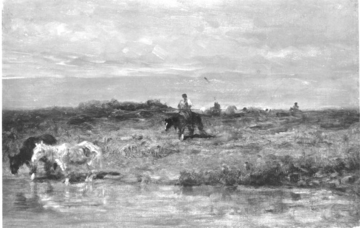 Adolf Schreyer, Pferde am Wasser, um 1870/80 (?), Bayerische Staatsgemäldesammlungen – Neue Pinakothek, URL: