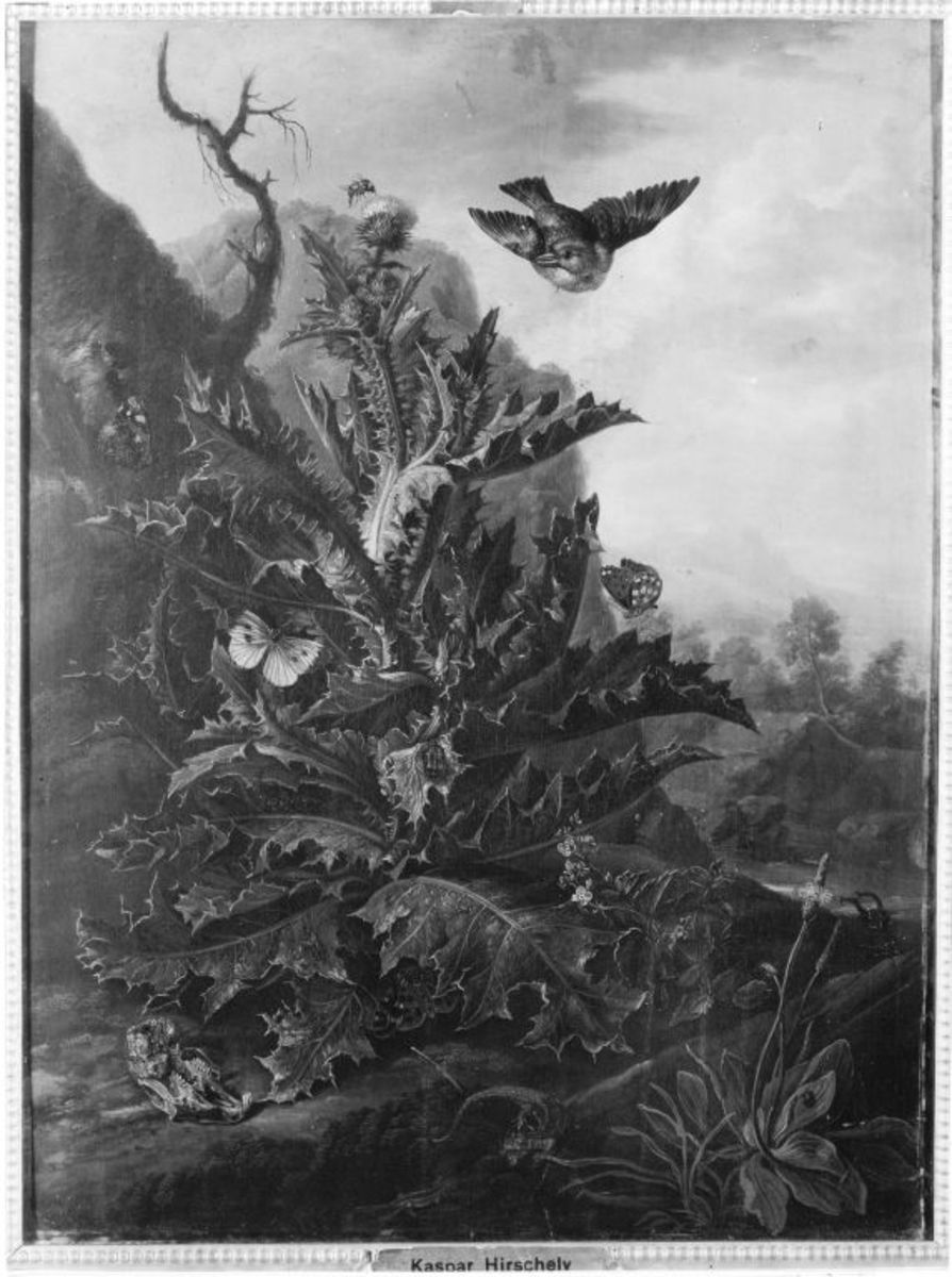 Caspar Hirschely, Stillleben mit Distel und Tieren, Bayerische Staatsgemäldesammlungen – Alte Pinakothek, URL: