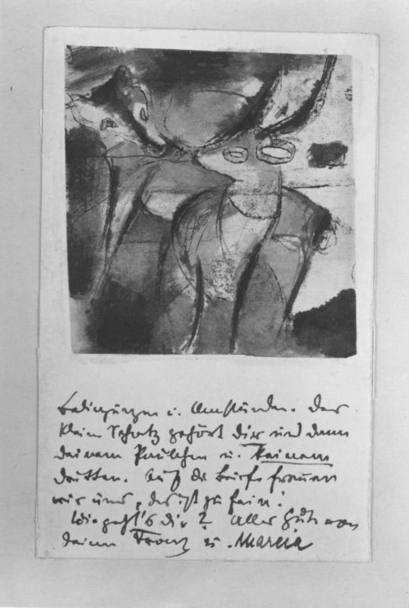 Franz Marc, Fuchs und Gazelle (Botschaften an den Prinzen Jussuff), 1913, Bayerische Staatsgemäldesammlungen – Pinakothek der Moderne, URL: https://www.sammlung.pinakothek.de/de/artwork/Dj4mXWlG5A (Zuletzt aktualisiert am 10.10.2025)