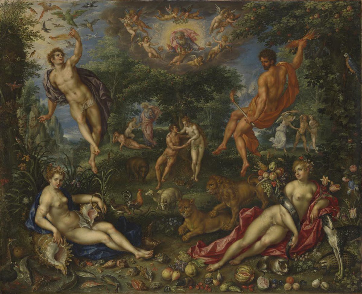 Hendrick de Clerckmit Denijs van Alsloot, Das Paradies mit den vier Elementen, um 1608, Bayerische Staatsgemäldesammlungen – Alte Pinakothek München, URL: https://www.sammlung.pinakothek.de/de/artwork/Dj4ma2b45A (Zuletzt aktualisiert am 27.10.2025)