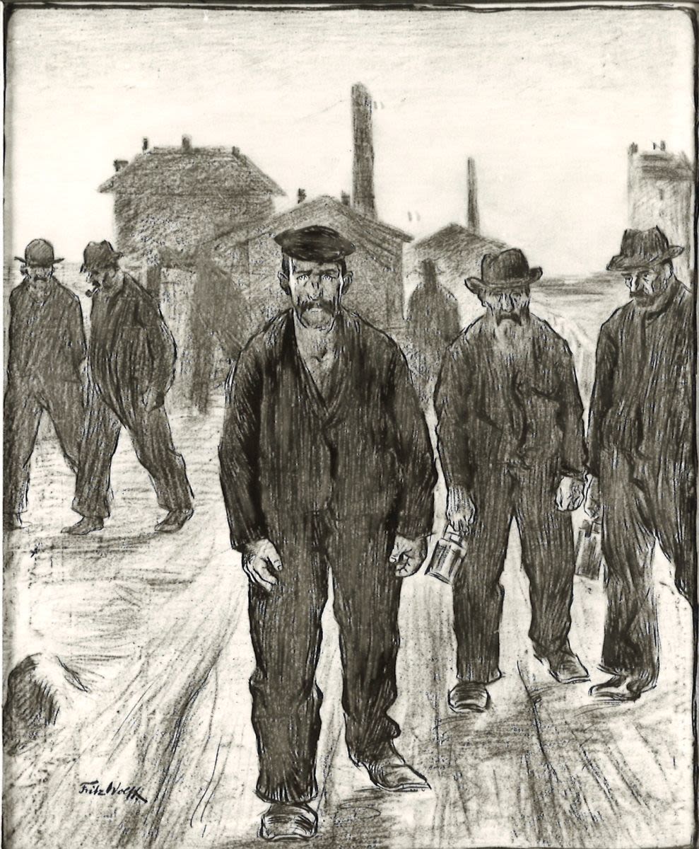 Fritz Wolff, Arbeiter nach der Schicht, um 1900/1920, Bayerische Staatsgemäldesammlungen – Neue Pinakothek, URL: