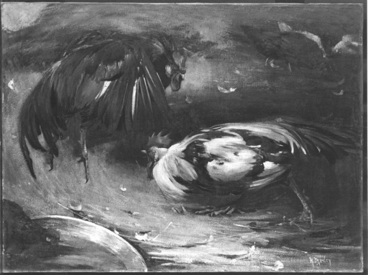 Henry Morley, Hahnenkampf, wohl gegen 1901, Bayerische Staatsgemäldesammlungen – Neue Pinakothek, URL: