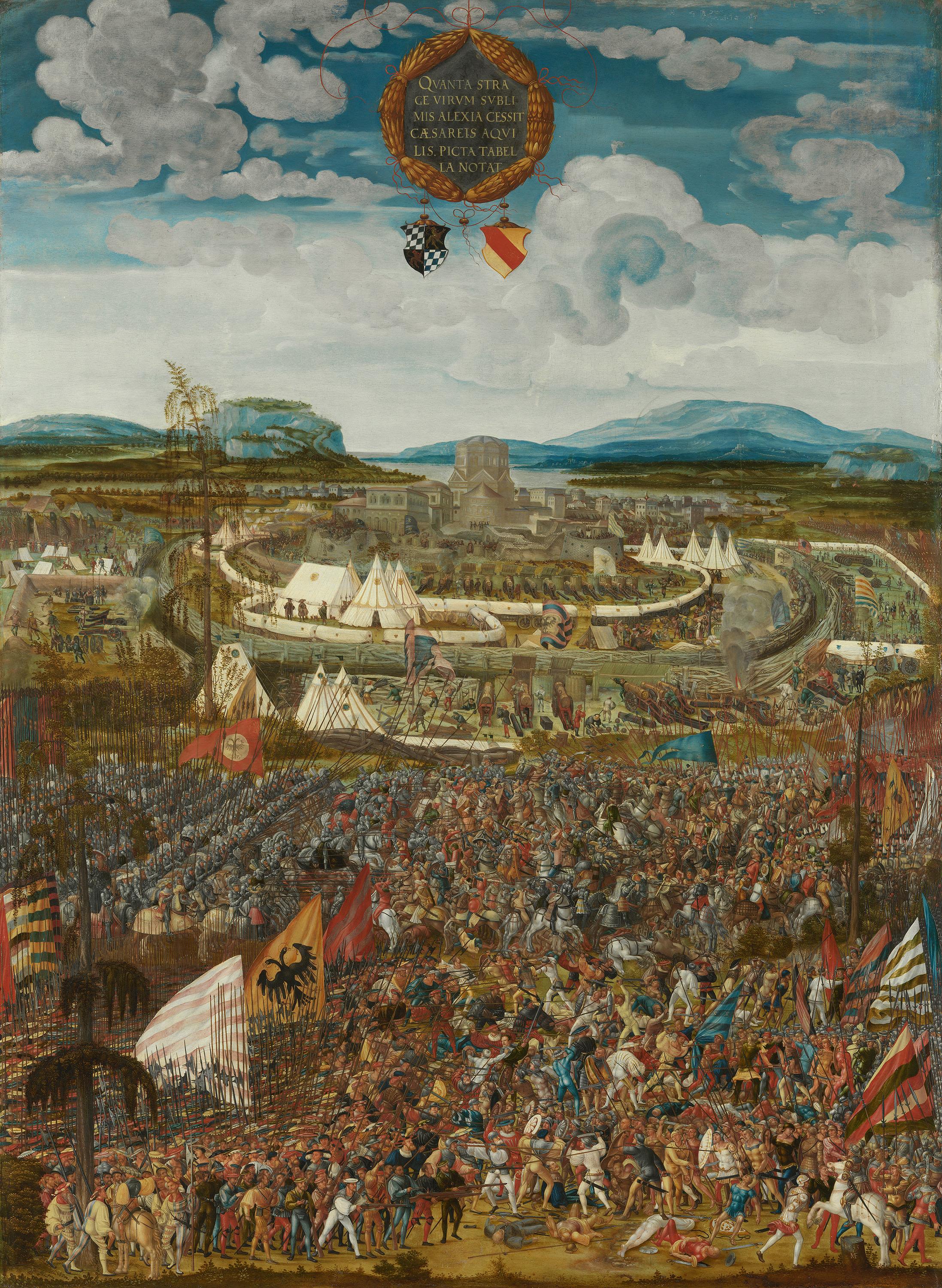 Melchior Feselen, Historienzyklus: Belagerung der Stadt Alesia durch Julius Caesar und der Kampf gegen Vercingetorix, 1533, Bayerische Staatsgemäldesammlungen – Alte Pinakothek, URL: