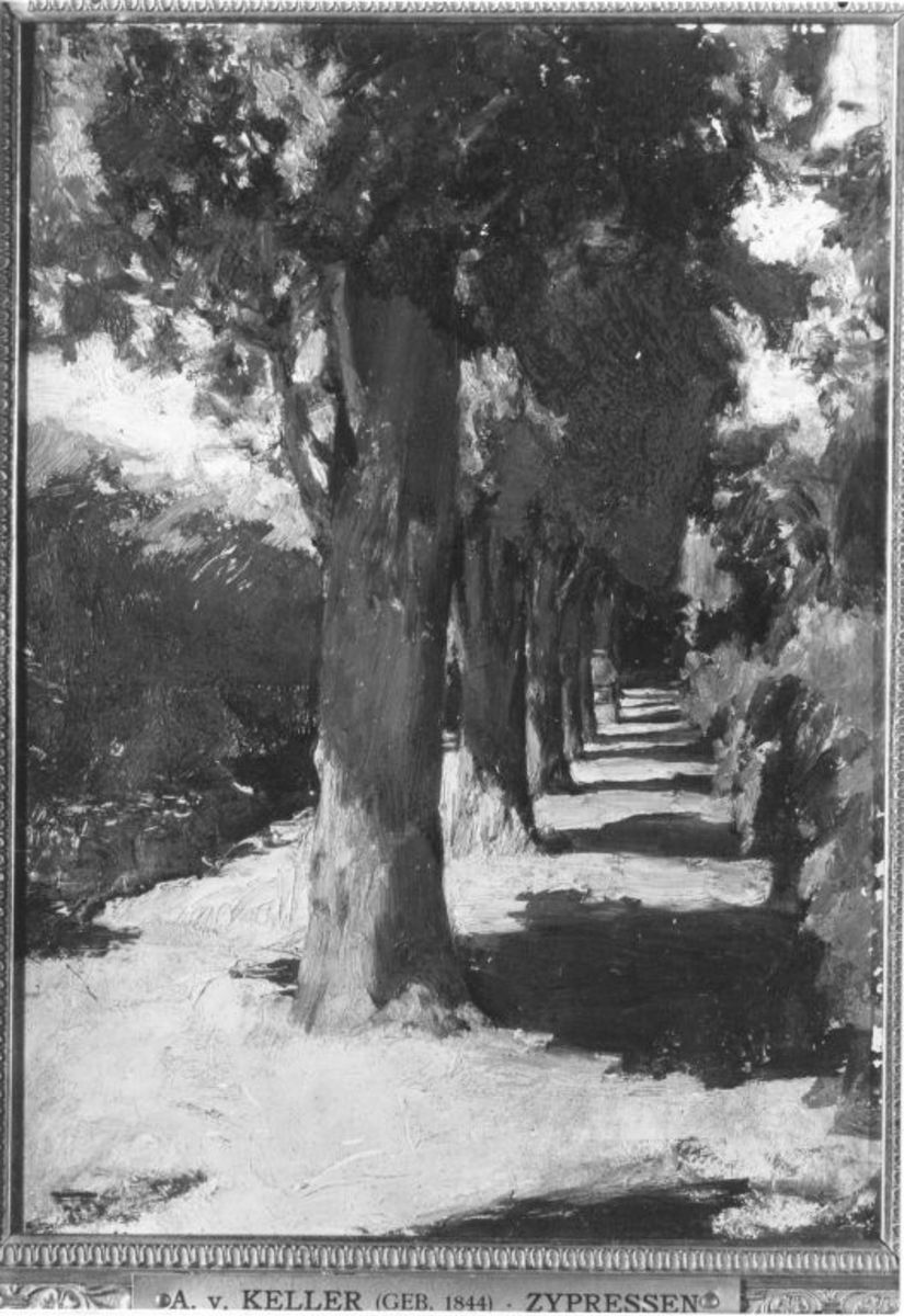 Albert von Keller, Zypressen, 1885, Bayerische Staatsgemäldesammlungen – Neue Pinakothek, URL: