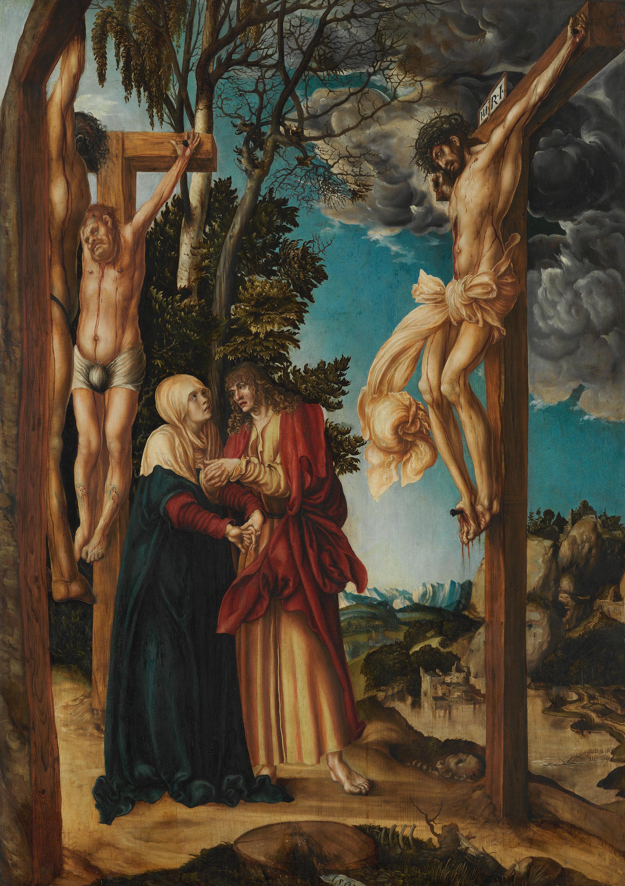 Die ›Kreuzigung Christi‹ ist das erste große Altargemälde Cranachs. Der Einunddreißigjährige gibt hierin einen eindrucksvollen Beweis seines schöpferischen Genies und expressiven Temperaments. Die traditionelle Komposition gruppiert er neu und bezieht sie ganz auf Maria, die er in der andächtig-schmerzreichen Betrachtung ihres leidenden Sohnes als Muster aller Frömmigkeit präsentiert. Atemberaubend ist die perspektivische Verkürzung des linken Schächers, das große Lendentuch Christi verselbstständigt sich zum Ornament.