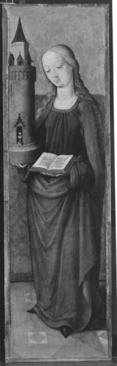 Meister der Aachener Schranktüren, Altarflügel: Hl. Barbara, um 1480, Bayerische Staatsgemäldesammlungen – Alte Pinakothek, URL: