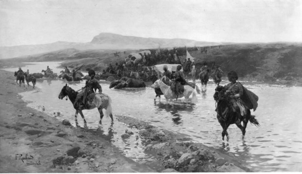 Franz Roubaud, Übergang über den Strom (Im Kaukasus), um 1893, Bayerische Staatsgemäldesammlungen – Neue Pinakothek, URL: