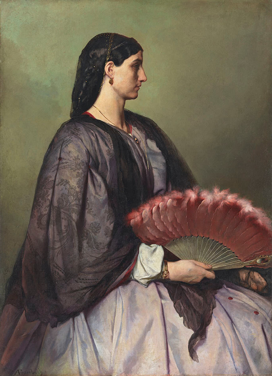 Das Gemälde ist eines der ersten Bildnisse der jungen Nanna, Muse und Geliebte Feuerbachs. Der denkmalhafte Aufbau ihres in schwere Gewänder gehüllten Körpers und die strenge Profilansicht verleihen ihr eine lebensferne Unnahbarkeit. Wenn Feuerbach den antiken Topos des Porträts im Profil zitiert, dann versuchte er darin das zeitlose Ideal mit den individuellen, charakteristischen Zügen der Frau zu verbinden. In dem fein abgestimmten Kolorit und der durchdachten Komposition zeigt sich der hohe Anspruch des Künstlers. In der persönlichen Tragik seiner Verbindung zu dem Modell Anna (»Nanna«) Risi wiederum spiegelt sich seine nicht leichte Beziehung von Kunst und Leben. Beide waren bei Feuerbach untrennbar miteinander verbunden.