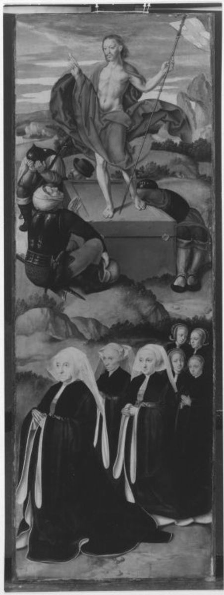 Meister der Heiligen Sippe und Barthel Bruyn d. Ä., Flügelaltar: Auferstehung Christi und sieben Stifterinnen