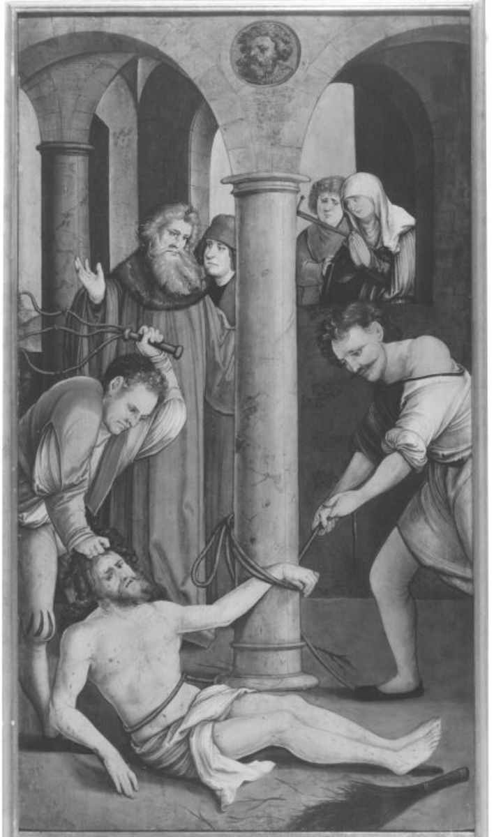 Hans Schäufelein, Christgartner Altar: Fall Christi bei der Geißelung, um 1515/16, Bayerische Staatsgemäldesammlungen – Alte Pinakothek, URL: https://www.sammlung.pinakothek.de/de/artwork/bwx0MdMLm8 (Zuletzt aktualisiert am 18.10.2025)