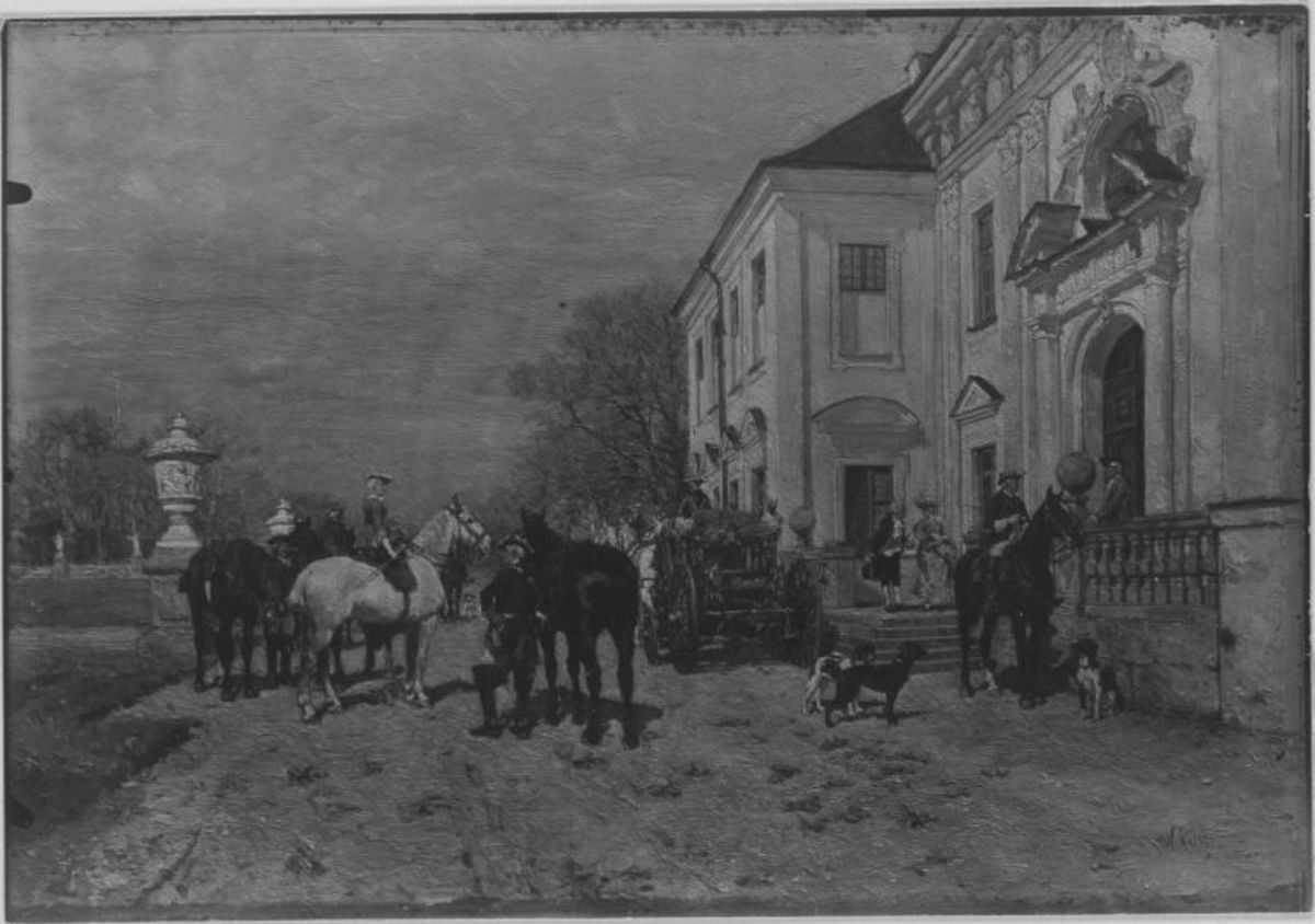 Wilhelm Velten, Ausritt zur Jagd, um 1890/1900 (?), Bayerische Staatsgemäldesammlungen – Neue Pinakothek, URL: