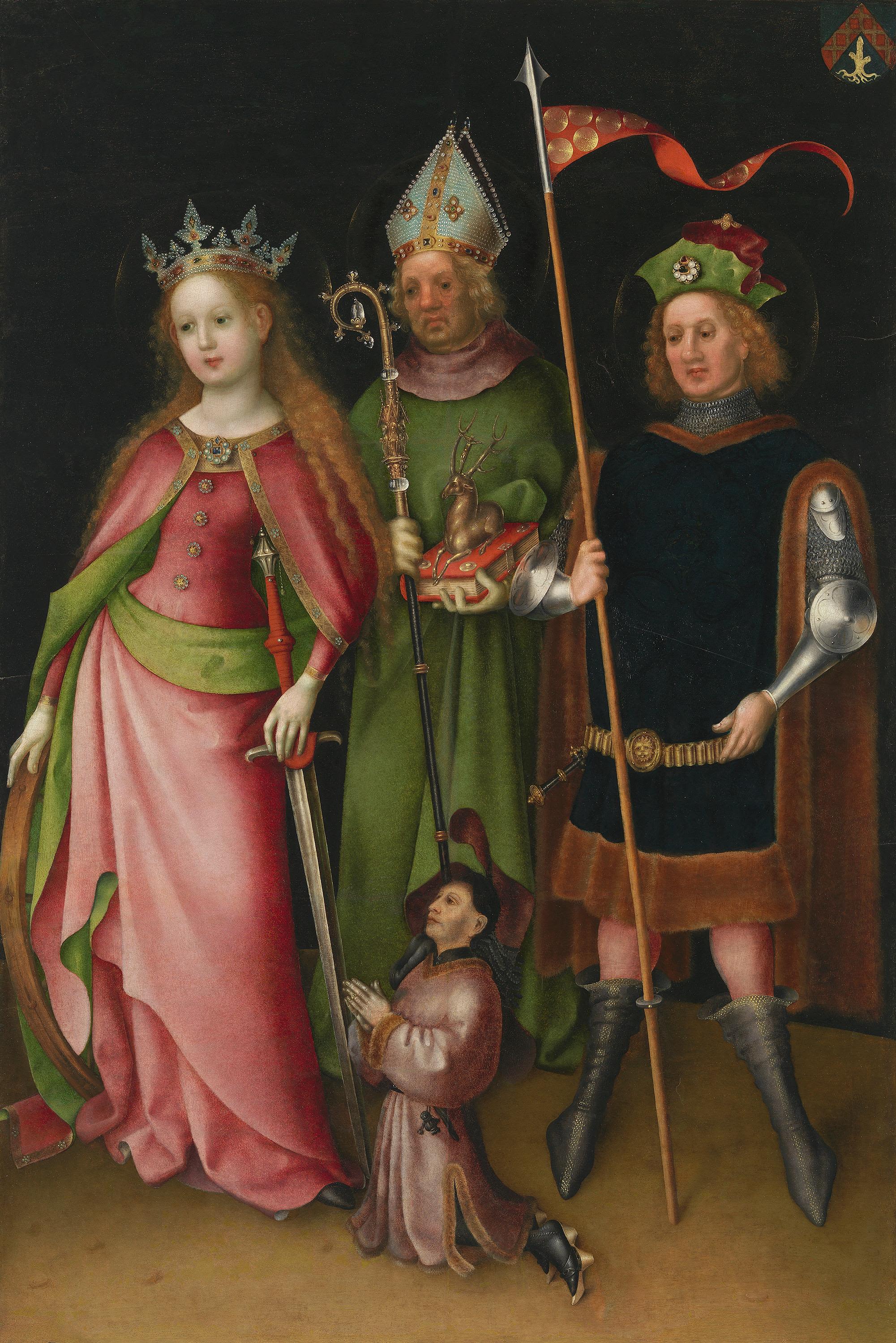 Ursprünglich dienten die Gemälde als Flügel des ›Jüngsten Gerichts‹ (Wallraf-Richartz-Museum, Köln). Das Retabel wurde möglicherweise für den Altar der 1435 gegründeten Katharinenbruderschaft in St. Aposteln geschaffen, der die beiden knienden Stifter angehörten. Im frühen 19. Jahrhundert wurden die Tafeln entsprechend der Anzahl der Apostelszenen zersägt (Städel, Frankfurt a. M.). Vorder- und Rückseiten trennte man und fügte die Heiligenreihe anschließend wieder zusammen. Eine kürzlich erfolgte Restaurierung konnte den Bildern ihre hohe Qualität zurückgeben. Im heute schwarzen Hintergrund waren ursprünglich blaue Wölkchen zu sehen.