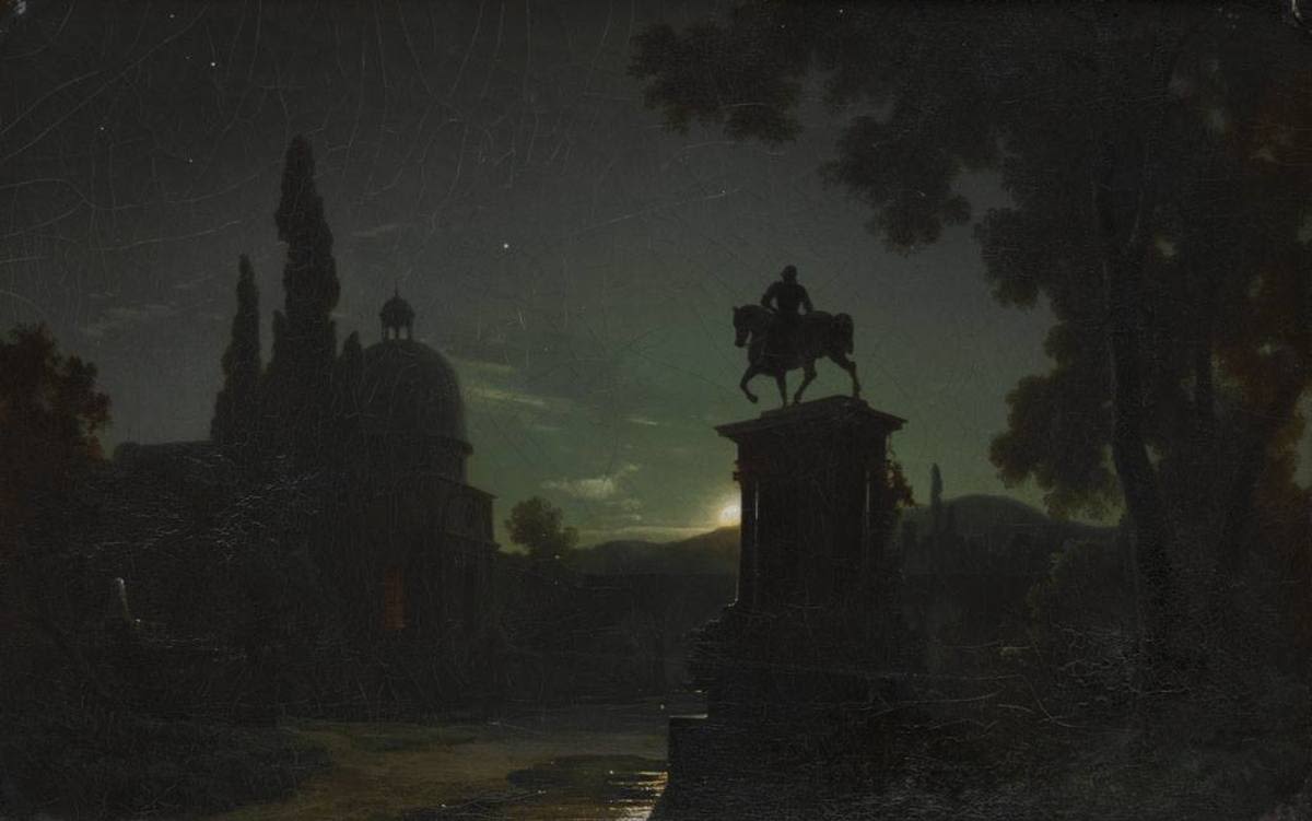 Venedig versinnbildlicht wie kein anderer Ort Italiens den Niedergang der einst mächtigen Stadtstaaten und Kunstzentren. Der Verlust der politischen Selbständigkeit unter Napoleon und die latente Gefährdung der Gebäude durch das Meer machten die Lagunenstadt zum romantischen Mythos der Vergänglichkeit schlechthin. Das Gemälde verbindet bekannte Venedigmotive zu einem stimmungsvollen Capriccio.