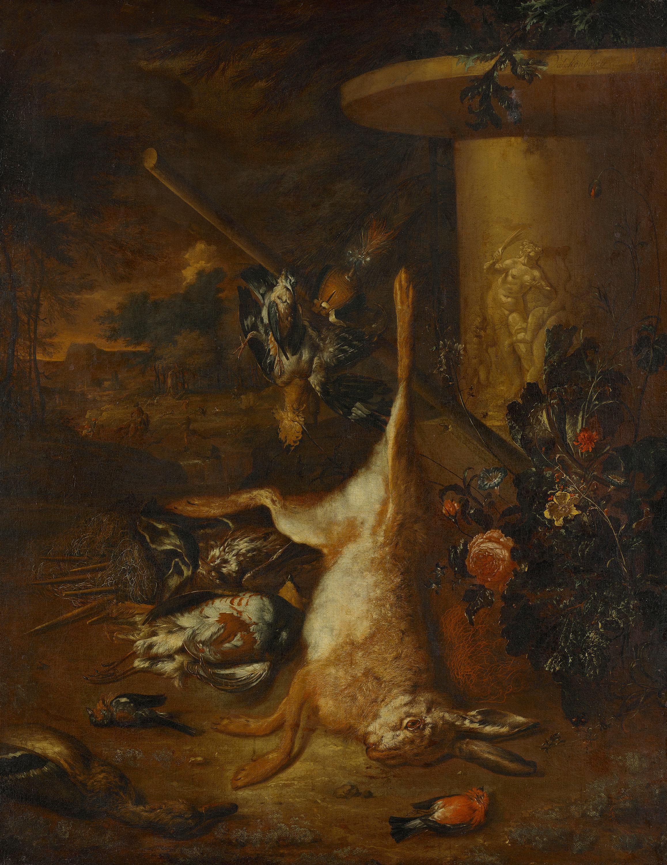 Dirk Valkenburg, Jagdbeutestillleben mit totem Hasen, 1698, Bayerische Staatsgemäldesammlungen – Alte Pinakothek, URL:
