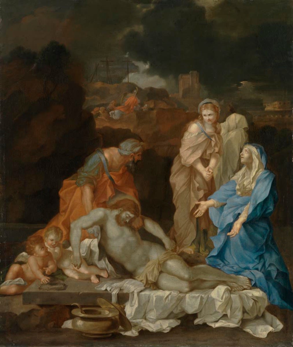 Sébastien Bourdon, Beweinung Christi am Grabe, um 1650, Bayerische Staatsgemäldesammlungen – Staatsgalerie im Schloss Johannisburg Aschaffenburg, URL: https://www.sammlung.pinakothek.de/de/artwork/rqxN3QbLvW (Zuletzt aktualisiert am 27.10.2025)