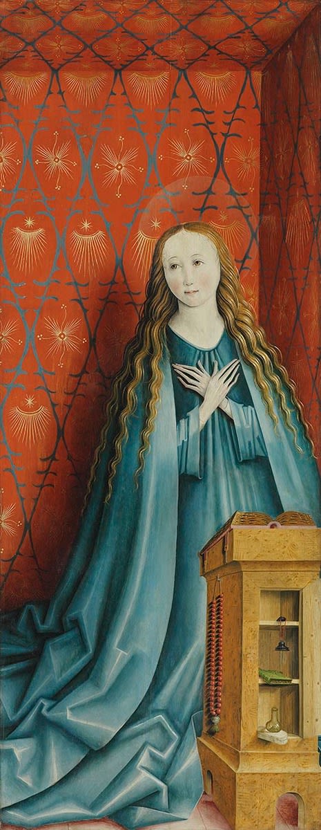 Schweiz(?), um 1470, Rechter Flügel einer Verkündigung: Maria, um 1470, Benediktinerabtei Ottobeuren, URL: