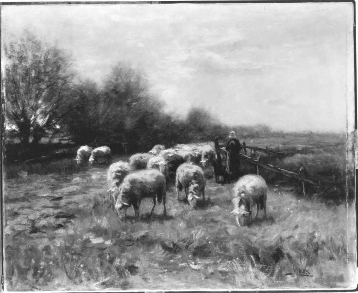 Johannes Karel Leurs, Schafe und Schäferin, um 1910, Bayerische Staatsgemäldesammlungen – Neue Pinakothek München, URL: https://www.sammlung.pinakothek.de/en/artwork/0vxoBg642V (Last updated on 19.12.2025)