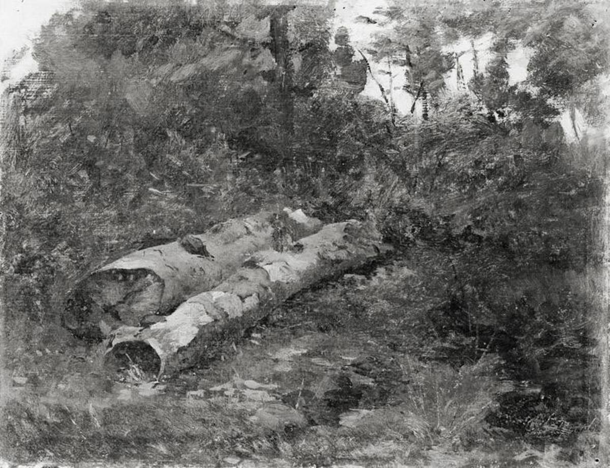Carl Schuch, Waldinneres mit zwei gefällten Bäumen, um 1882 (?), Bayerische Staatsgemäldesammlungen – Neue Pinakothek, URL: https://www.sammlung.pinakothek.de/en/artwork/0vxoBnY42V (Last updated on 29.01.2026)