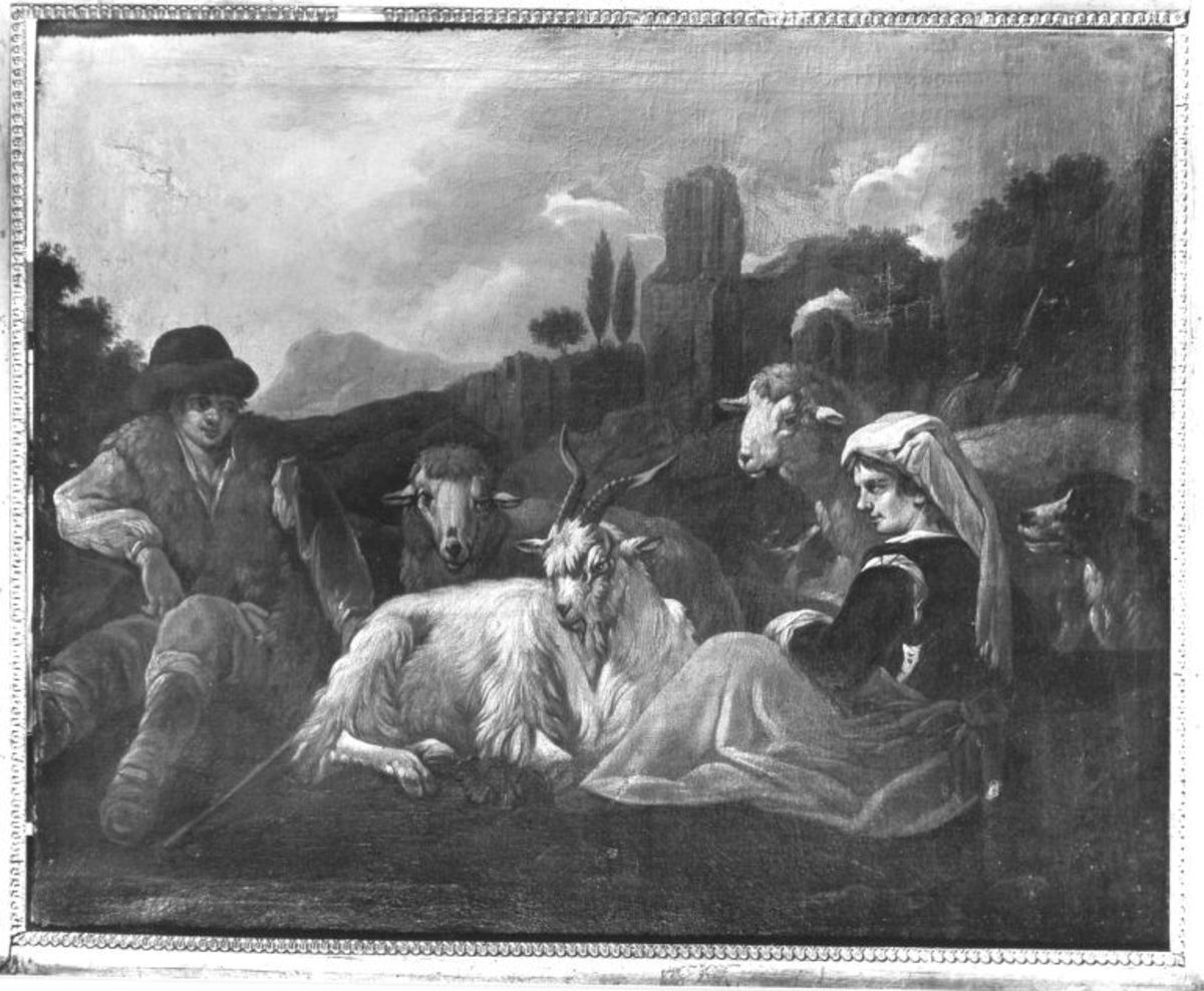 Philipp Peter Roos (gen. Rosa da Tivoli), Hirtenpaar und Kleinvieh in italienischer Landschaft, um 1710, Bayerische Staatsgemäldesammlungen – Alte Pinakothek, URL: https://www.sammlung.pinakothek.de/en/artwork/2mxqeDyx8b (Last updated on 27.10.2025)