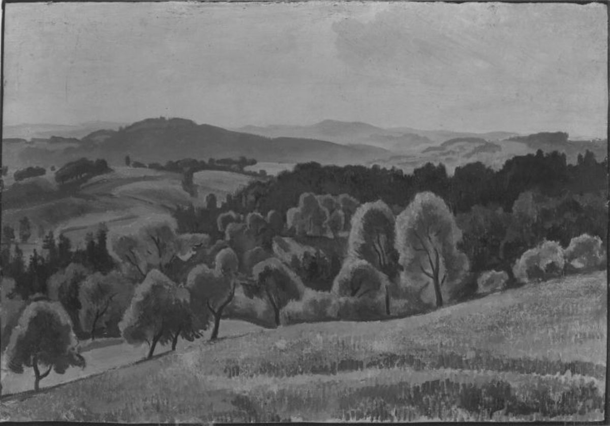 Lothar Bechstein, Hügellandschaft, Bayerische Staatsgemäldesammlungen – Pinakothek der Moderne, URL: https://www.sammlung.pinakothek.de/en/artwork/8eGV5wwLWQ (Last updated on 29.10.2025)
