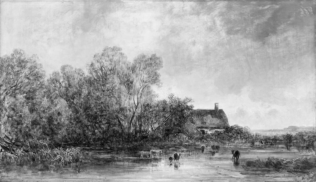 Eduard Schleich d. Ä., Dorfpartie bei Pasing, um 1870, Bayerische Staatsgemäldesammlungen – Neue Pinakothek, URL: