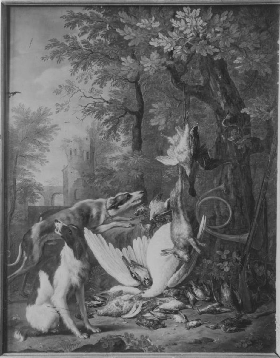 Jacob Andries Beschey, Jagdbeute mit zwei Hunden, Bayerische Staatsgemäldesammlungen – Alte Pinakothek München, URL: