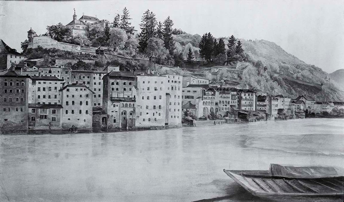 Friedrich Loos, Häuser in Salzburg, 1833, Bayerische Staatsgemäldesammlungen – Neue Pinakothek, URL: https://www.sammlung.pinakothek.de/en/artwork/ApL8gNNxN2 (Last updated on 10.12.2025)