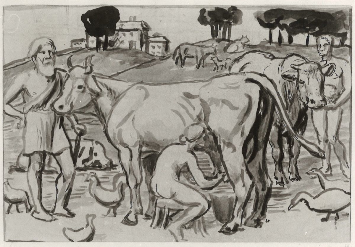 Arthur Volkmann, Personen und Vieh in Landschaft, E. 19. Jh.(?), Bayerische Staatsgemäldesammlungen – Pinakothek der Moderne, URL: