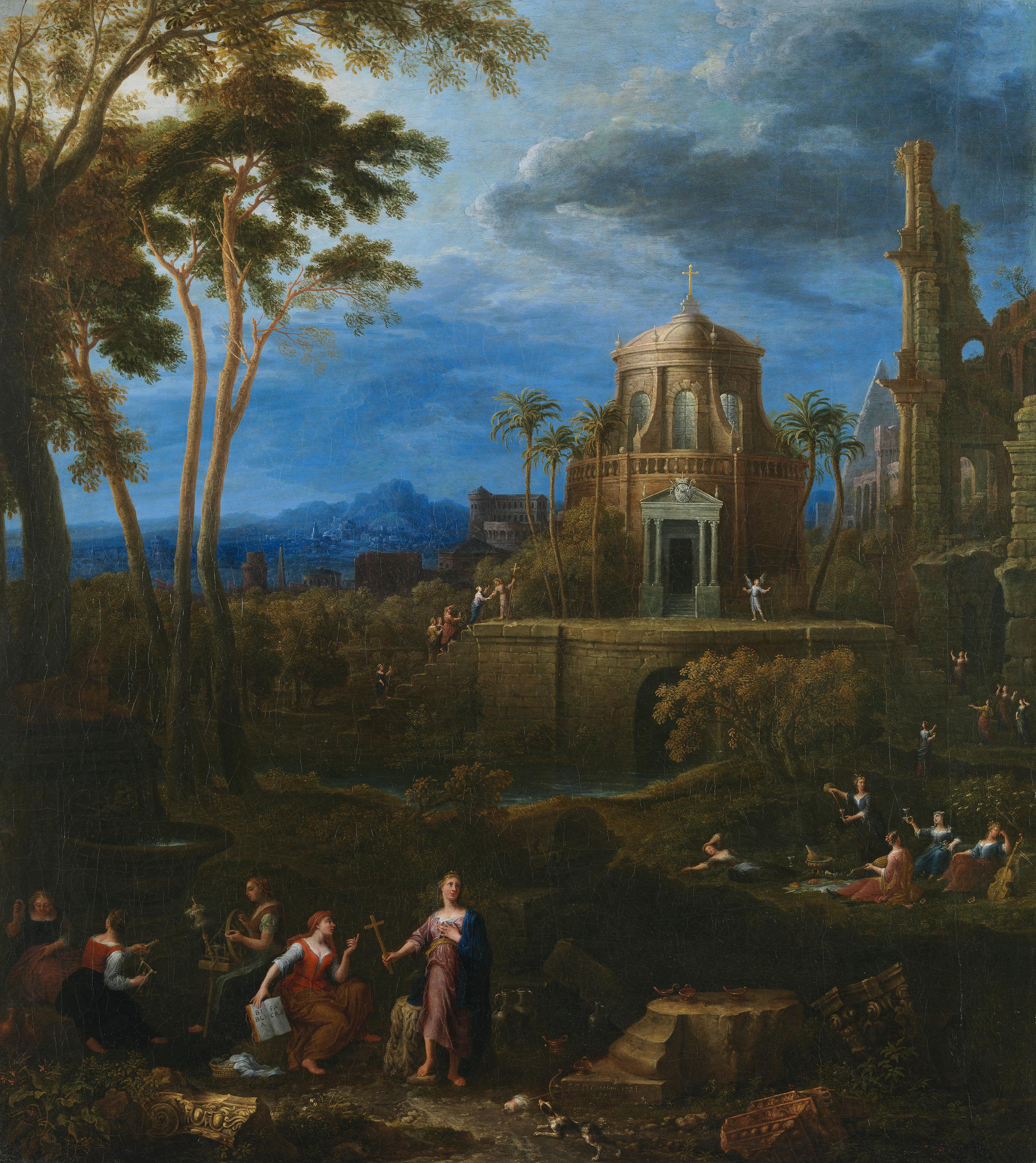 Jan Joost van Cossiau, Landschaft mit dem Gleichnis von den klugen und törichten Jungfrauen, 1721, Bayerische Staatsgemäldesammlungen, URL: https://www.sammlung.pinakothek.de/en/artwork/Dn4ZyzZGaK (Last updated on 17.11.2025)