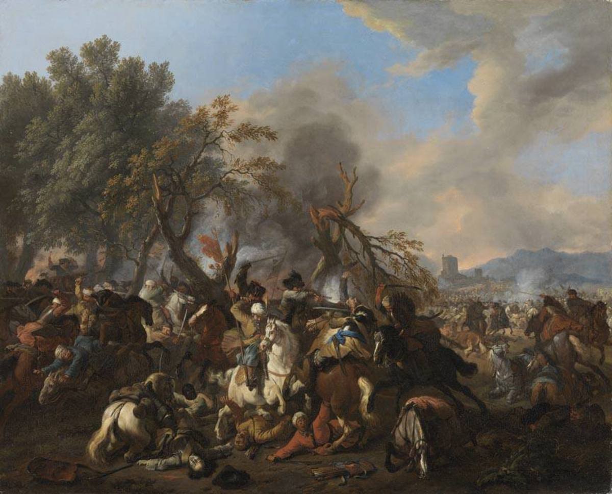 Jan van Huchtenburgh, Reiterkampf am Waldrand, 1711, Bayerische Staatsgemäldesammlungen – Alte Pinakothek, URL: