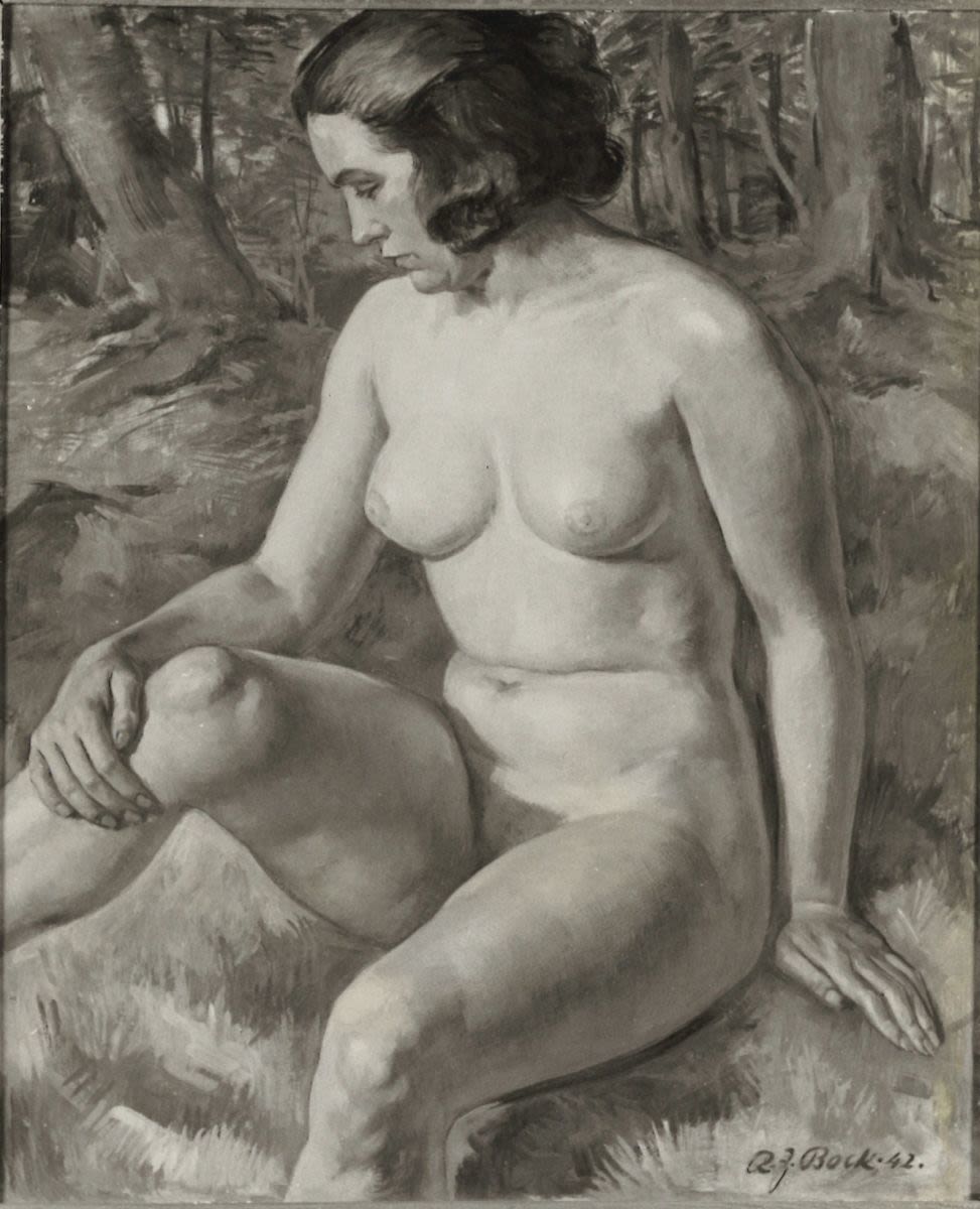 Robert Jakob Bock, Akt im Wald, 1942, Bayerische Staatsgemäldesammlungen – Pinakothek der Moderne, URL: