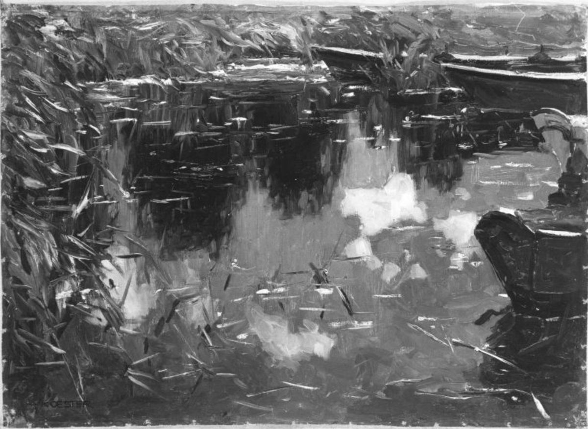 Alexander Koester, Wasserstudie mit Kähnen, vor 1932, Bayerische Staatsgemäldesammlungen – Neue Pinakothek, URL: