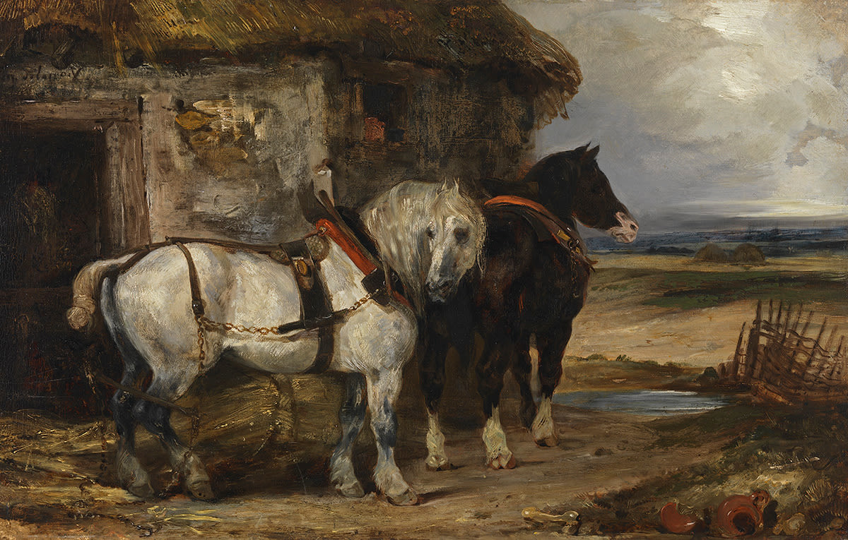 Eugène Delacroix, Zwei Pferde vor einem Stall, um 1825/27, Bayerische Staatsgemäldesammlungen – Neue Pinakothek, URL: