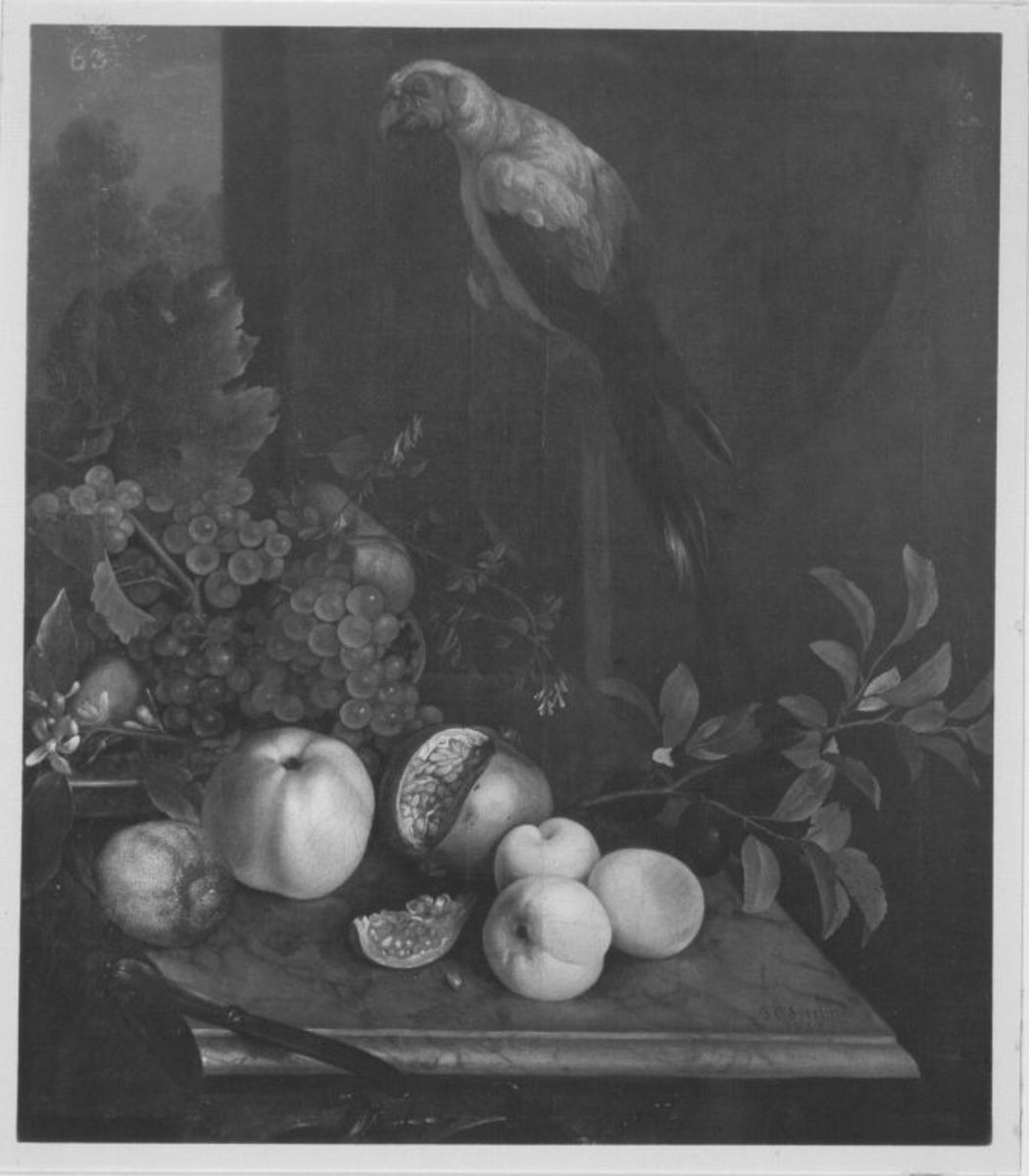 Früchtestück mit Papagei,