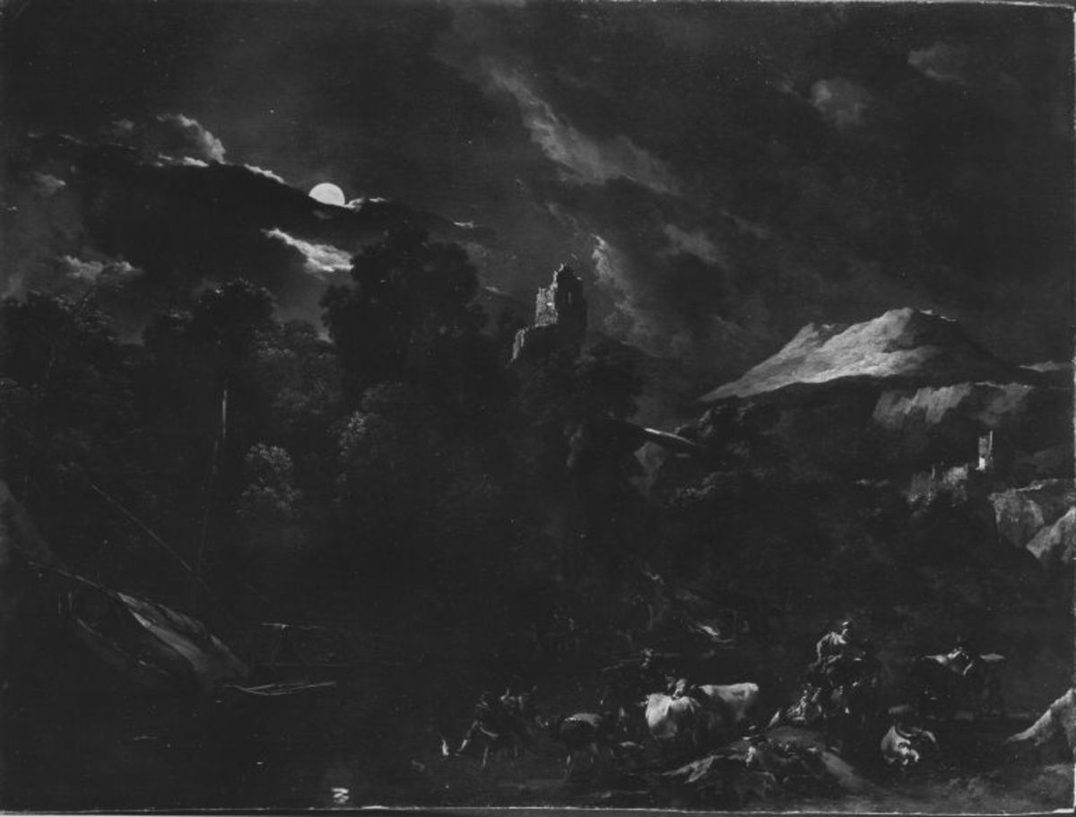 Nicolaes Berchem, Gebirgslandschaft bei Mondschein mit Viehherde und Hirten, Bayerische Staatsgemäldesammlungen – Alte Pinakothek, URL: