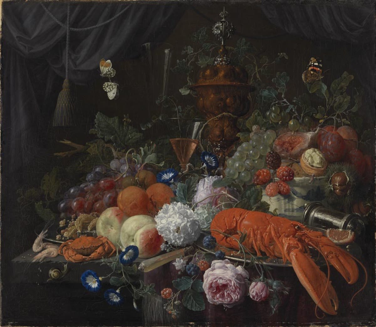 Jan Davidsz. de Heem, Blumen und Früchtestillleben mit Hummer, Staatsgalerie im Schloss Johannisburg, URL: