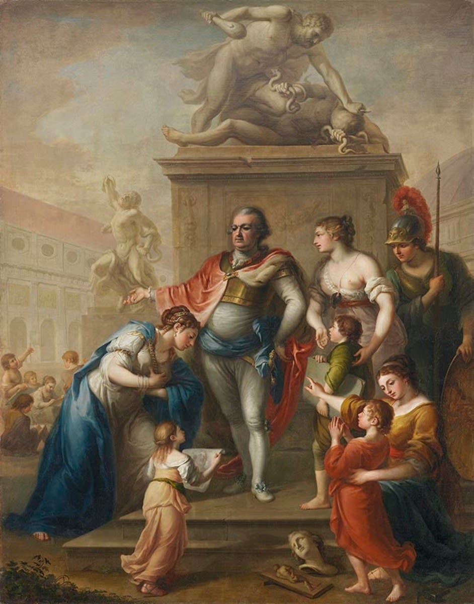 Johann Jakob Dorner d. Ä., Bayern und die Schönen Künste huldigen Carl Theodor, 1794, Bayerische Staatsgemäldesammlungen – Neue Pinakothek, URL: https://www.sammlung.pinakothek.de/en/artwork/Znxw0vjLXg (Last updated on 10.10.2025)