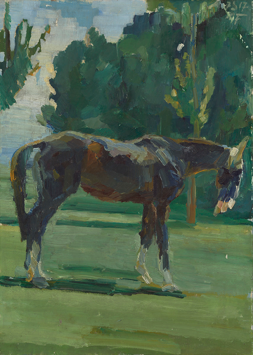 Max Feldbauer, Pferd im Grünen, 1917, Bayerische Staatsgemäldesammlungen – Neue Pinakothek, URL: https://www.sammlung.pinakothek.de/en/artwork/ZnxwPvnLXg (Last updated on 10.10.2025)