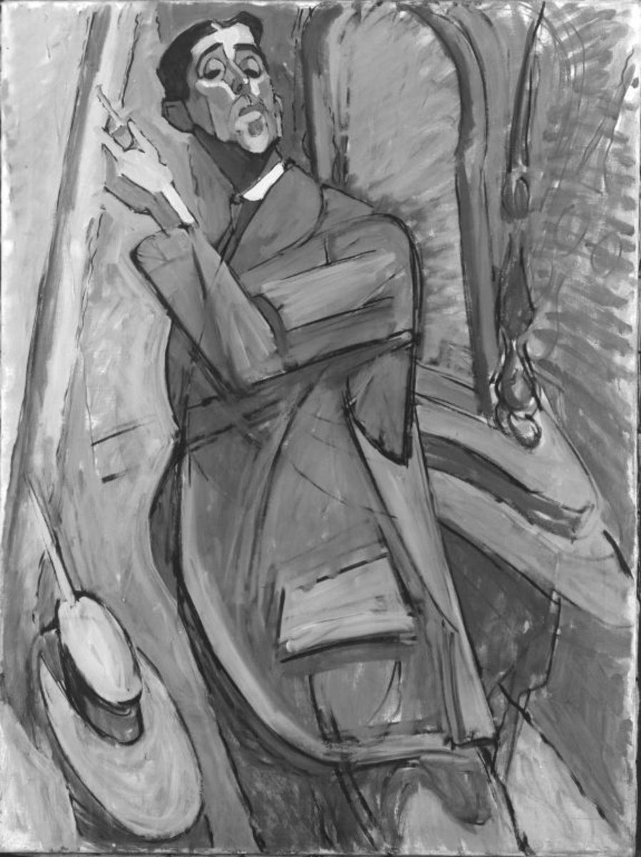 Anton Kerschbaumer, Selbstbildnis mit Ofen und Kommode I, 1919, Bayerische Staatsgemäldesammlungen – Pinakothek der Moderne, URL: https://www.sammlung.pinakothek.de/en/artwork/ZnxwqPoGXg (Last updated on 28.10.2025)