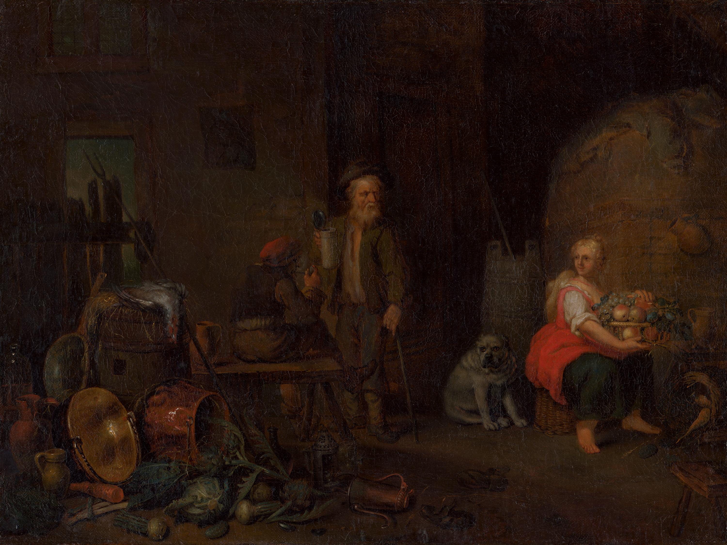 Jan Baptist Govaerts, who was appointed court painter in Mainz at the end of his life, takes up a Netherlandish model in these pictures. Kitchen interiors were very popular in the seventeenth century due to the many details as well as the different surfaces of metal and ceramic or the fur of a hare that could be depicted.